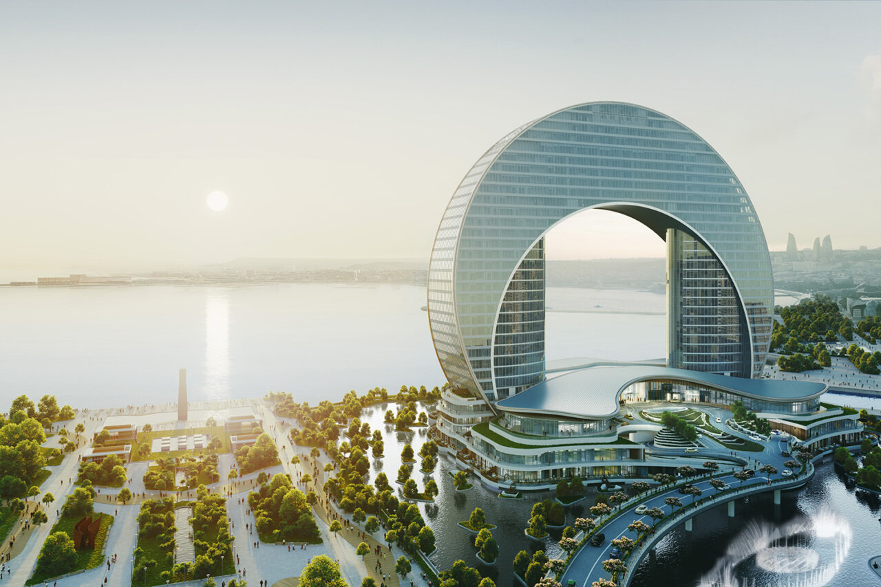 Отмечается, что возвышающаяся над Каспийским морем бухта Полумесяца станет еще одной архитектурной жемчужиной Баку.